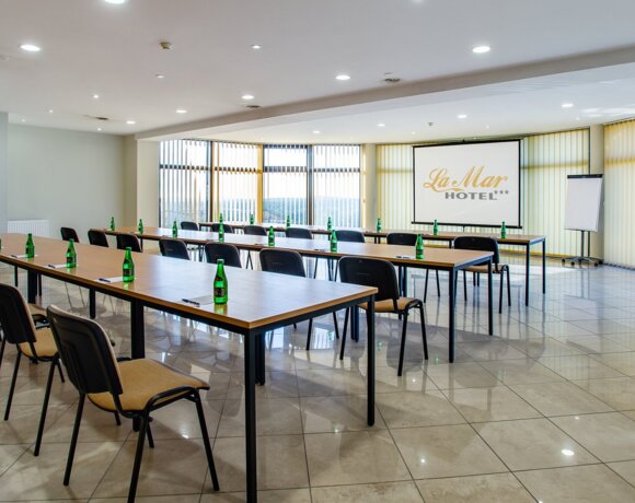 Jeśli szukasz idealnego miejsca na organizację konferencji na dużą skalę, kameralnego panelu biznesowego lub miejsca do zorganizowania szkolenia pracowniczego, wybierz komfortowe sale konferencyjne w Kielcach. Zadbaj o wizerunek swojej firmy i wybierz profesjonalne wsparcie przy organizacji różnego rodzaju imprez biznesowych. W Hotelu La Mar masz do dyspozycji aż 460 miejsc konferencyjnych i 80 noclegowych. Nie musisz martwić się, że sale będą zatłoczone i nie znajdzie się miejsce w pokoju na nocleg. Sześć przestronnych sal wyposażonych w nowoczesny sprzęt audiowizualny umożliwia prowadzenie interaktywnych prezentacji i wideokonferencji. Profesjonalne sale konferencyjne to gwarancja najlepszego przygotowania eventów biznesowych począwszy od wystroju wnętrza po kwestie techniczne. Oprócz perfekcyjnie przygotowanych sal uczestnicy mają do dyspozycji komfortowe pokoje. Wyposażone wedle najwyższych standardów, z dostępem do Internetu. Wysokiej klasy obiekty konferencyjne wyposażone są także w centra rekreacyjne. W hotelu La Mar w Kielcach goście mają możliwości skorzystania ze strefy cardio oraz z basenu i kręgielni. Odprężenie w Hotelu po całym dniu szkoleń czy pracy to duże udogodnienie, które zawsze jest przyjmowane z entuzjazmem.